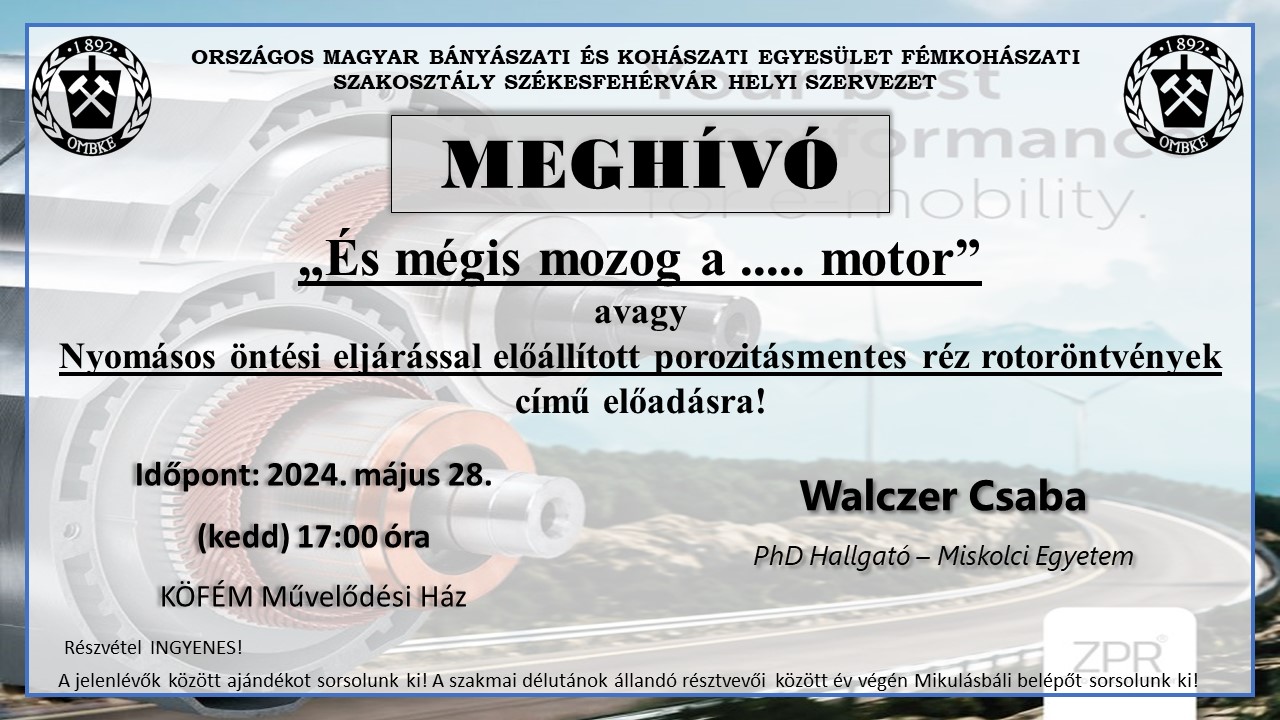 Szakmai előadás – Fémkohászati Szakosztály Székesfehérvári Helyi Szervezete