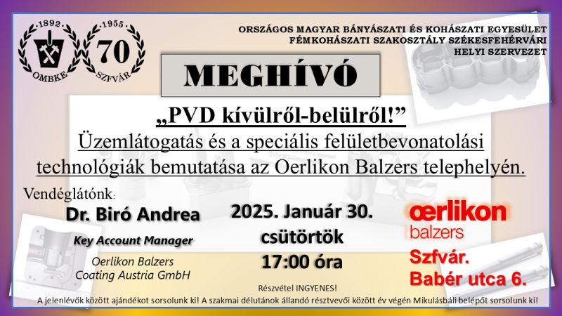 - Dr. Biró Andrea Key Account Manager – Oerlikon Balzers Coating Austria GmbH